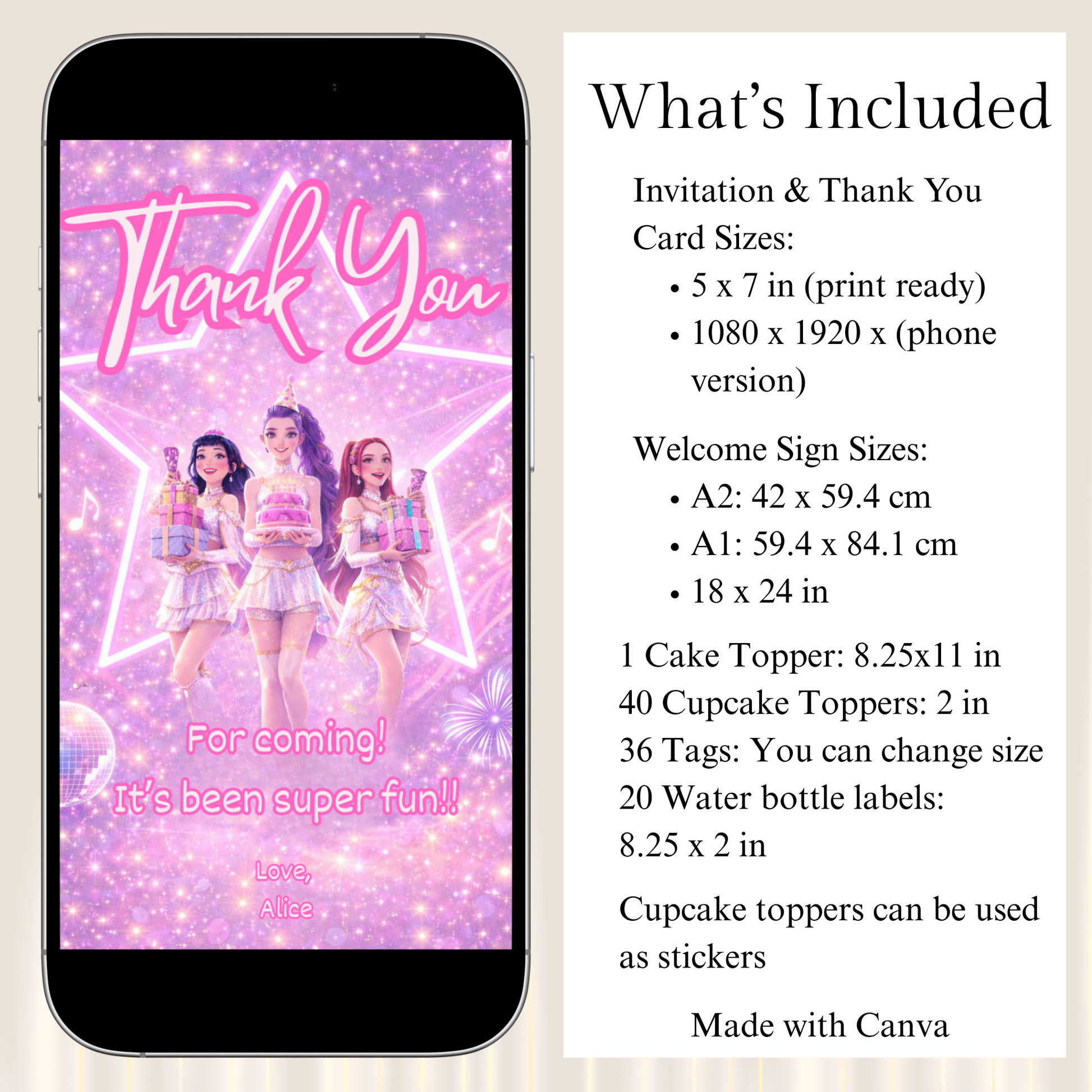 Get everything in one coordinated design instead of buying items separately. Save hours of planning with ready-to-edit templates, enjoy the flexibility of both digital and printable formats, and create a professional, cohesive party look without the designer price tag.
