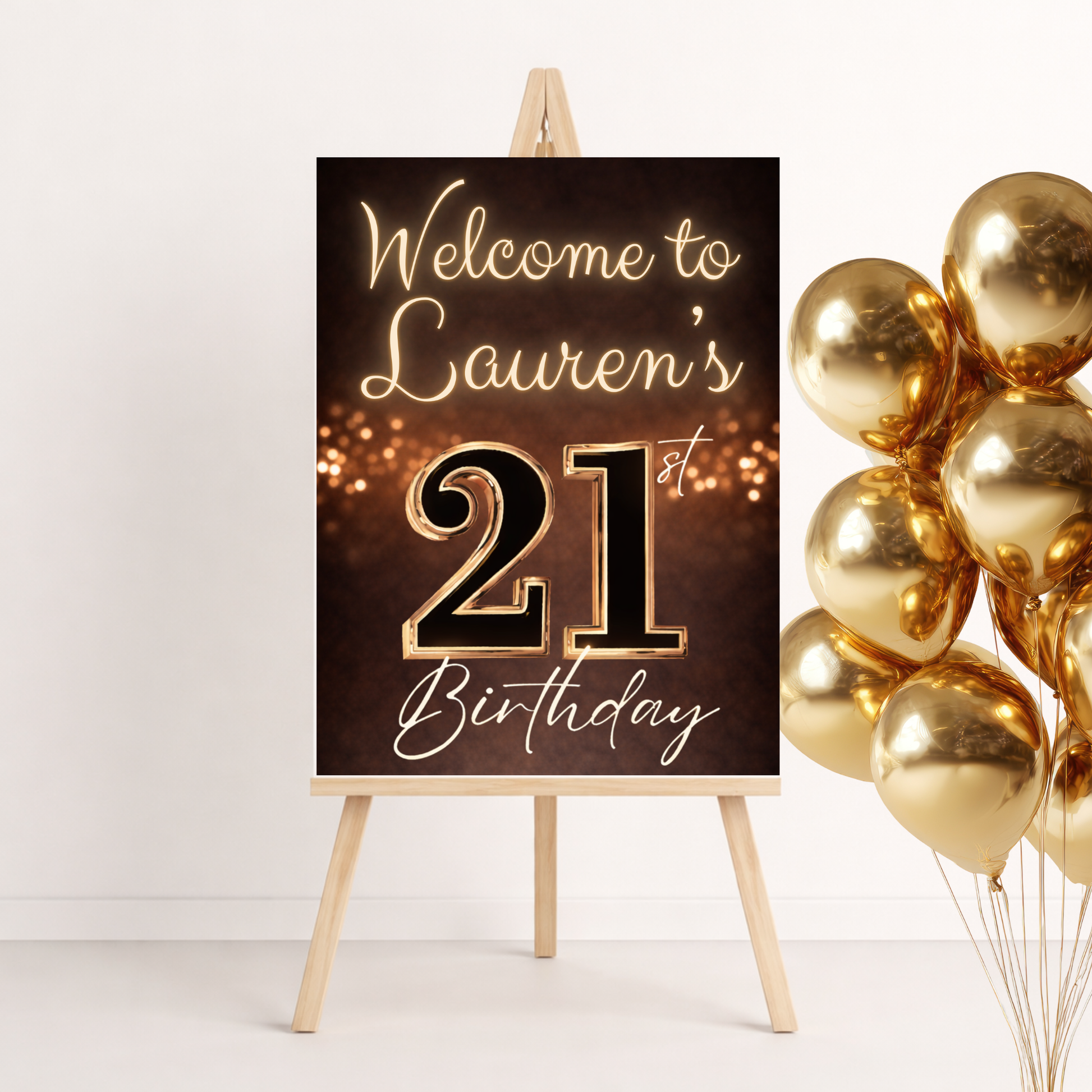 Metallic Golden 21st Birthday Invitation Template | Editable Elegant Gold Party Invite + Welcome Sign Bundle