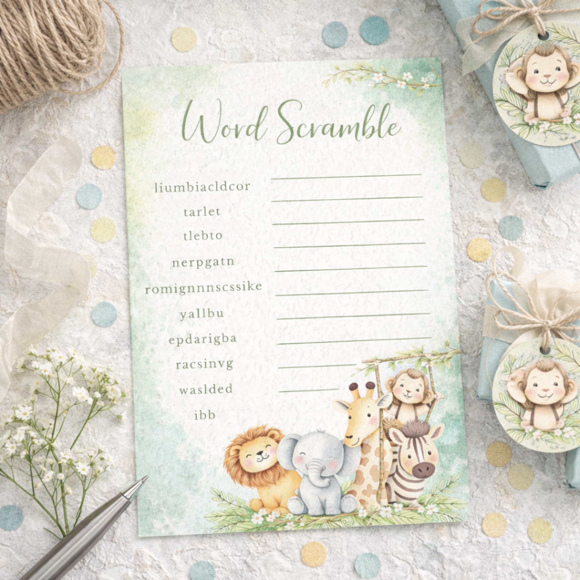 Easily personalize the mama’s name, date, time, address, and event details in just minutes. The signature safari typography and illustrated jungle elements are beautifully set as fixed features, creating a polished, premium design that’s ready to impress.