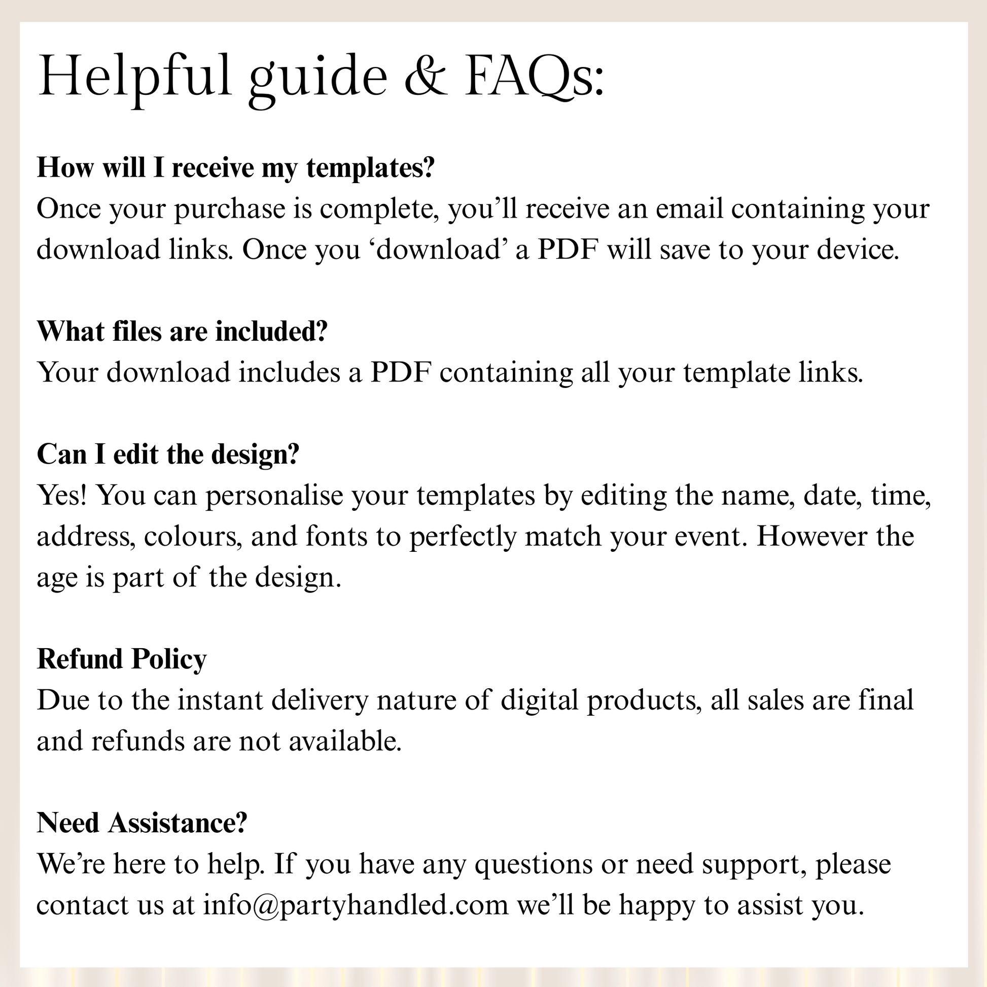Get everything in one coordinated design instead of buying items separately. Save hours of planning with ready-to-edit templates, enjoy the flexibility of both digital and printable formats, and create a professional, cohesive party look without the designer price tag.